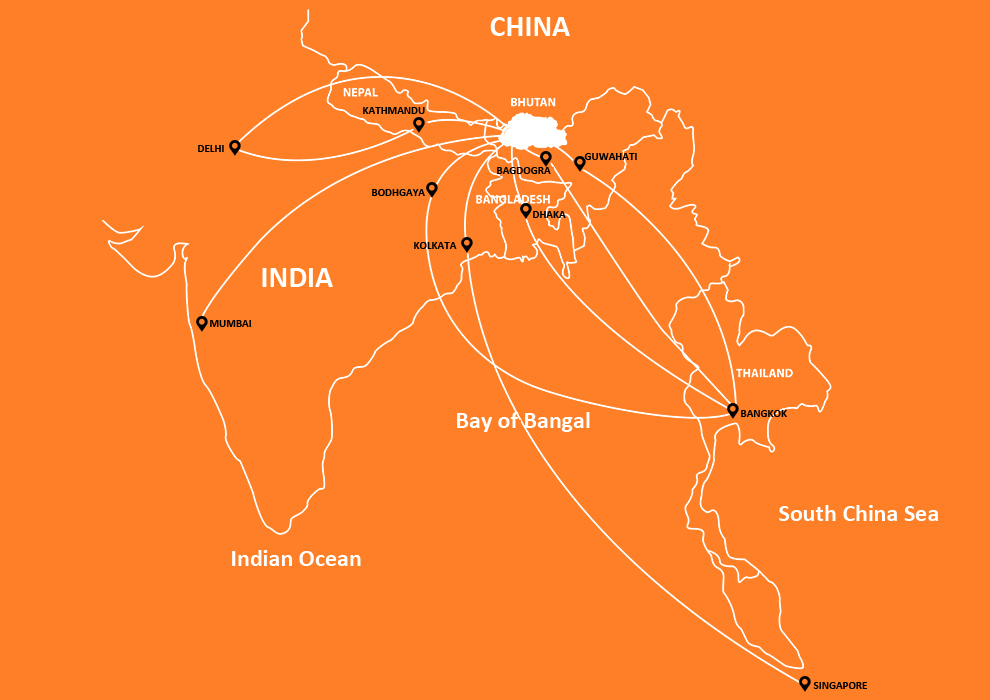 Bhutan is nestled in the magnificent Himalayas, known as Ambrosial Kingdom on Earth. The Last Shangri La, is an ancient empire secluded high in the Abode of the Snow Himalayas with a unique culture and traditional people with strong beliefs. Bhutan can be accessed by road from Phuntsholing, which adjoins the region of Jaigaon India, as well as by air from New Delhi, Kolkata, Kathmandu, Bangkok and Dhaka.